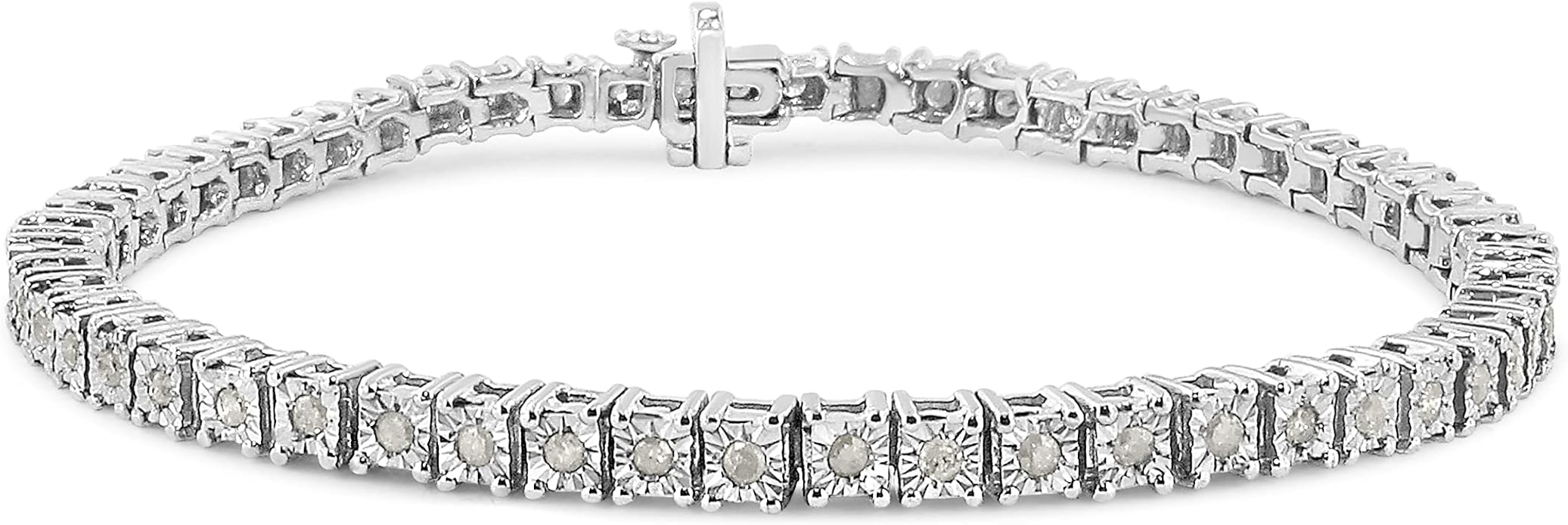 Original Classics Sterling Silver 1.0 Cttw Diamond Square Frame Miracle-Set Tennis Bracelet (I-J, I3) – Choice of Metal Color and Size