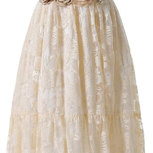 Weileenice Big/Little Girls Lace Bridesmaid Dress with Belt Sheer Back Bohemian Kids Wedding Pageant Party Maxi Dresses
